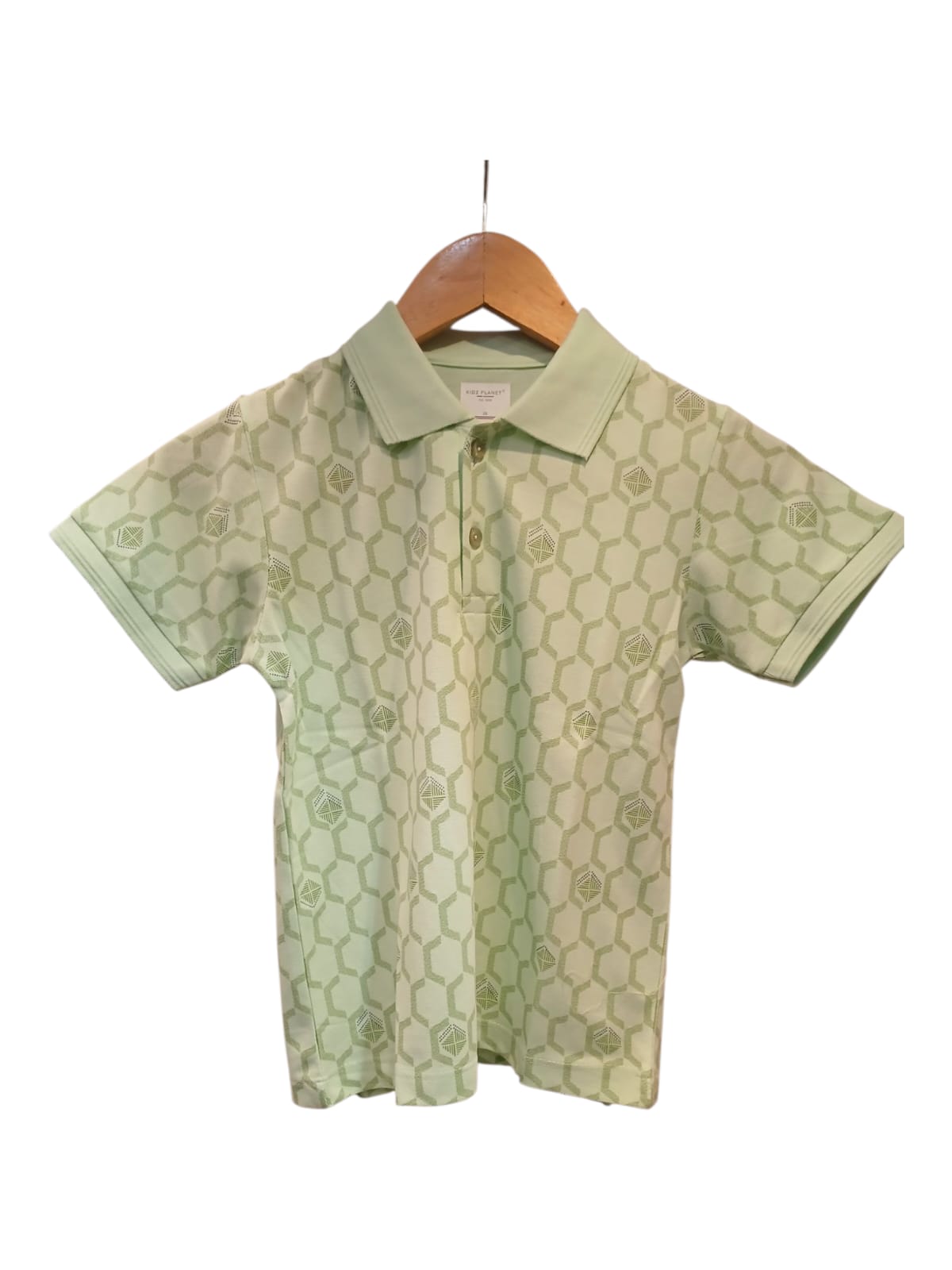 Boys light Green Geometric Print polo t-shirt