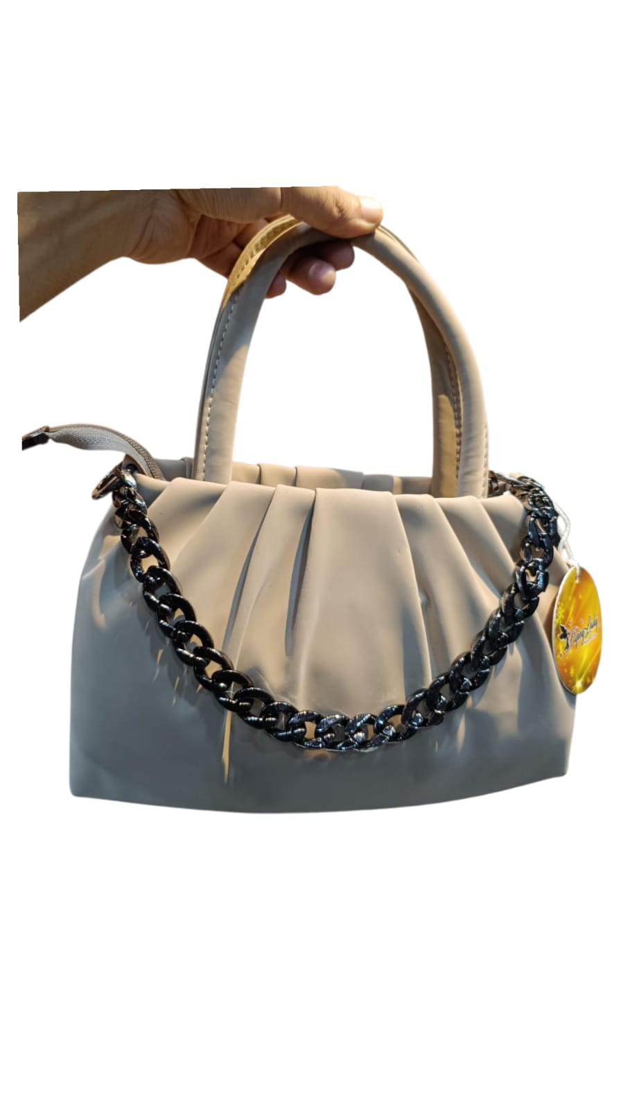 Elegant Pleated HandHeld Bag With Black ChainAccent-Beige – Themahajangarments.in