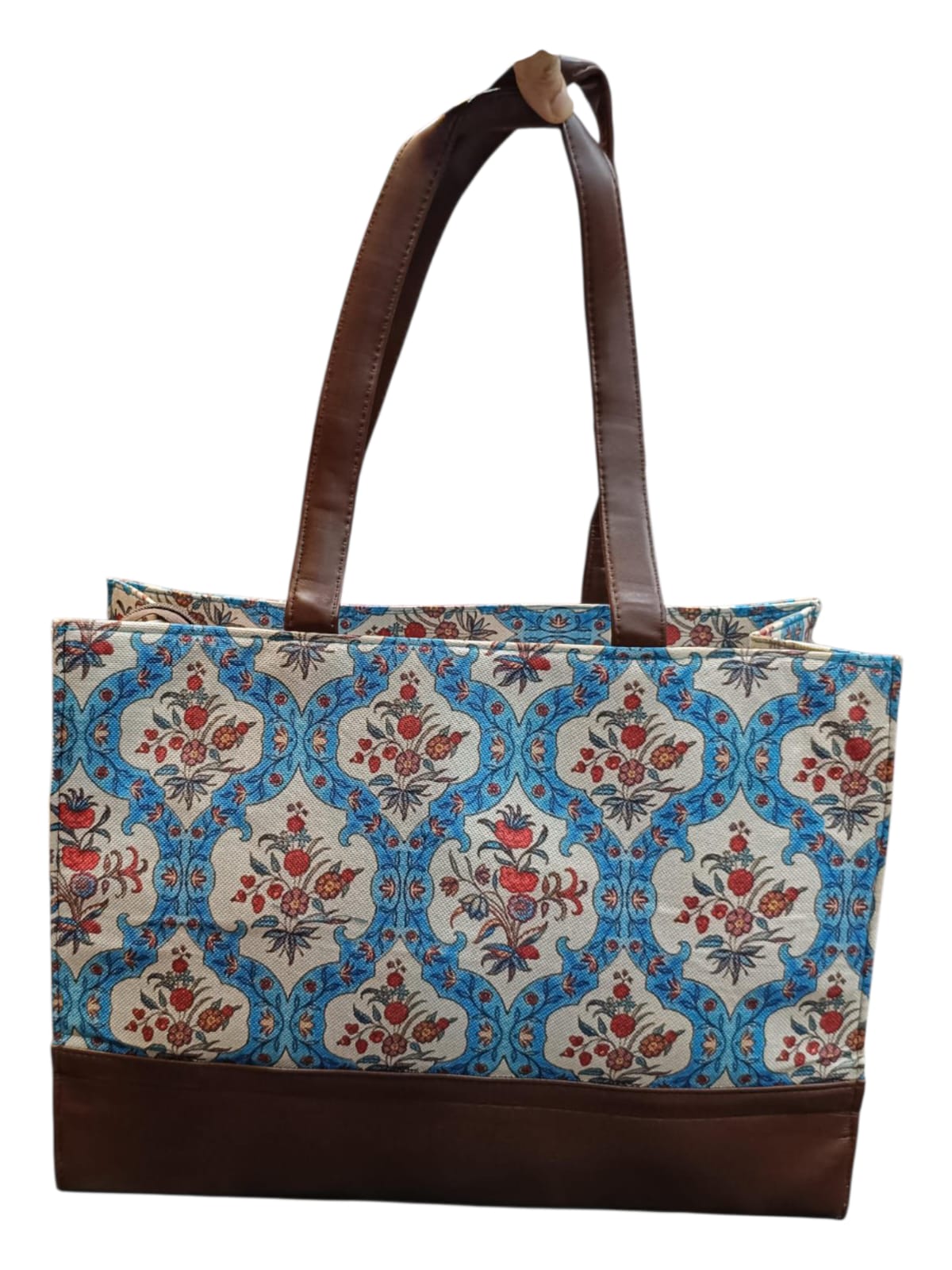 Ethnic Print Canvas tote Bag With faux leather Accents