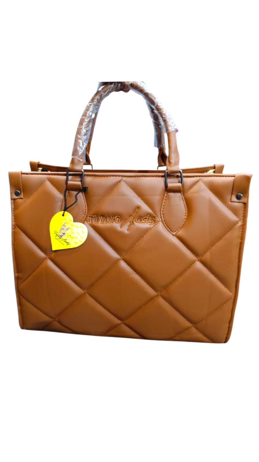 Flying Lady Quilted FauxLeather HandBag -Tan