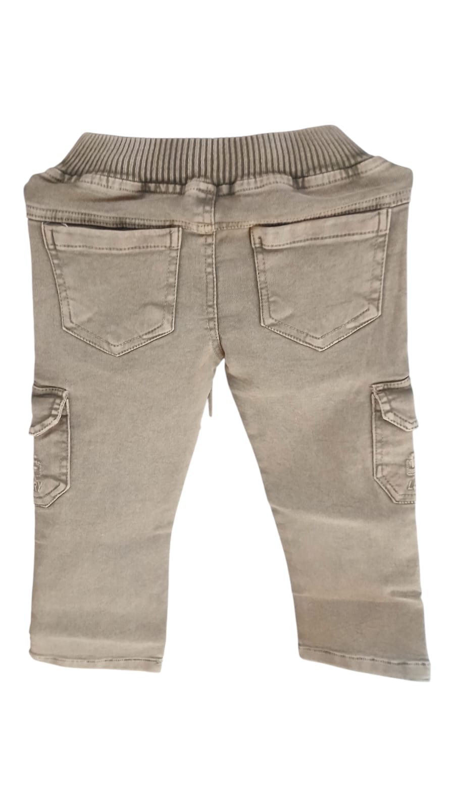 Kids Khaki Cargo Jogger Pants With Drawstring waist-Swini knitwears