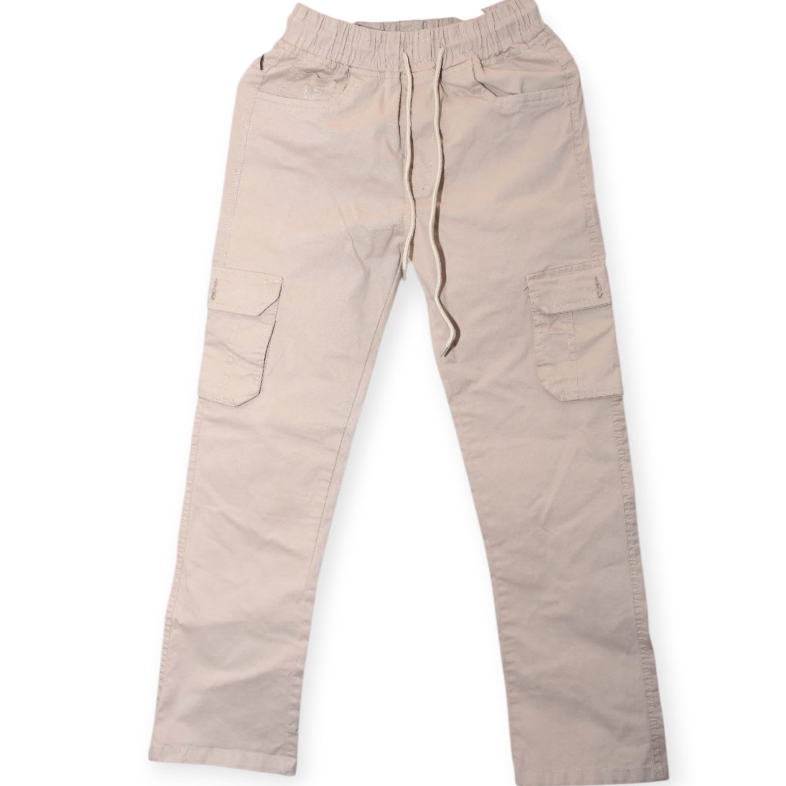 Mens Beige Cargo Jogger Pants With Drawstring Waist