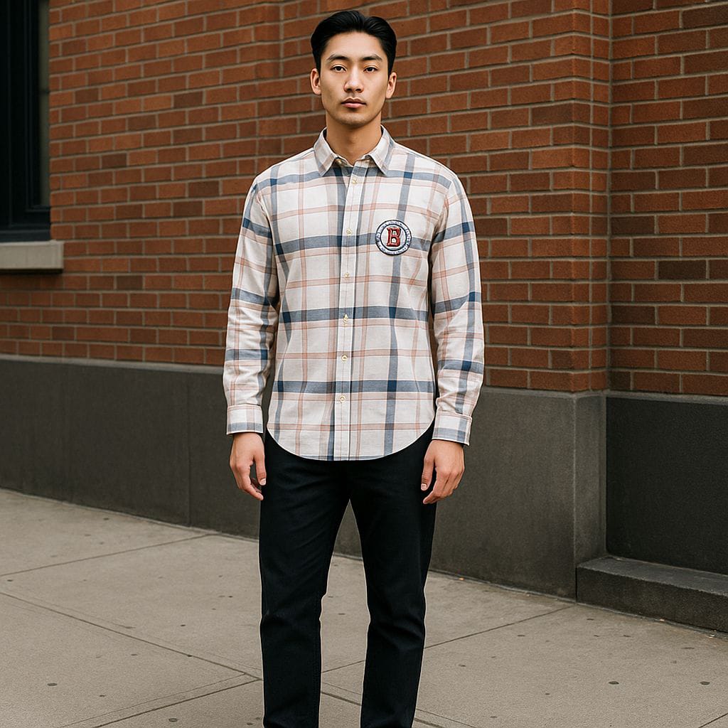 Mens Casual Peach & Navy Checkered Cotton Shirt Size Xl
