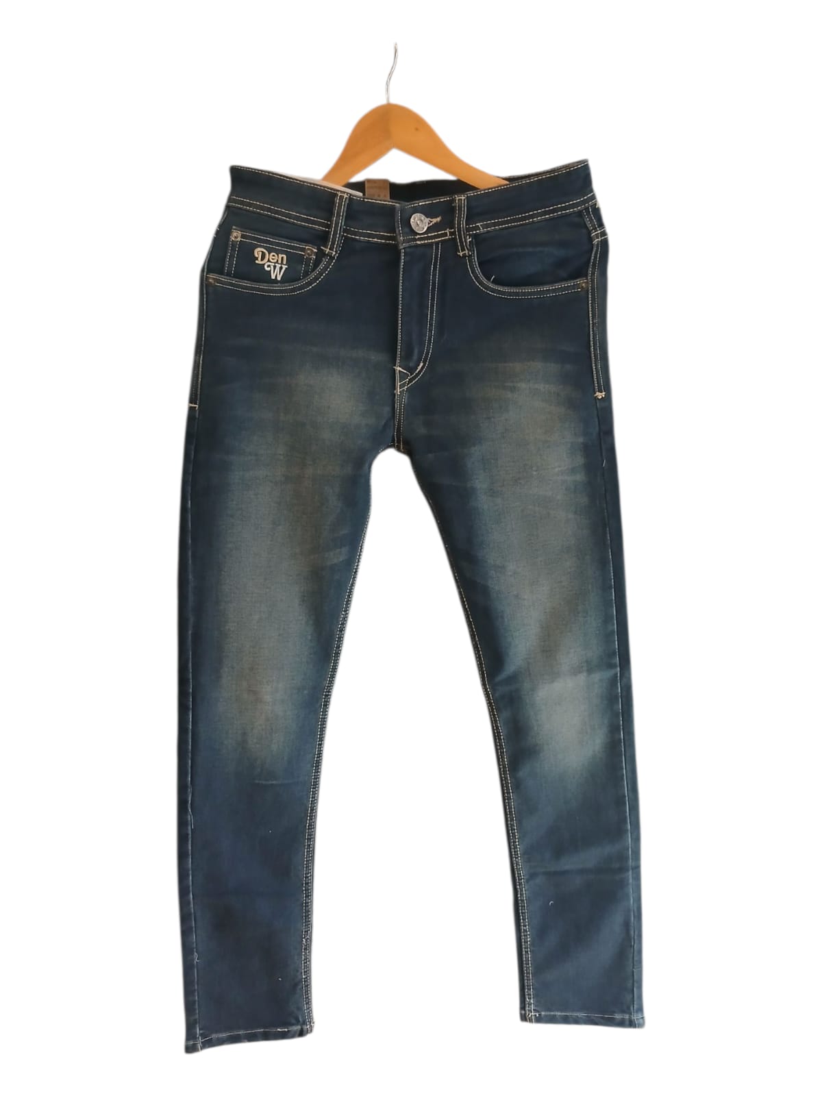 Mens Slim Fit Distressed Denim Jeans -Den W Logo Detail