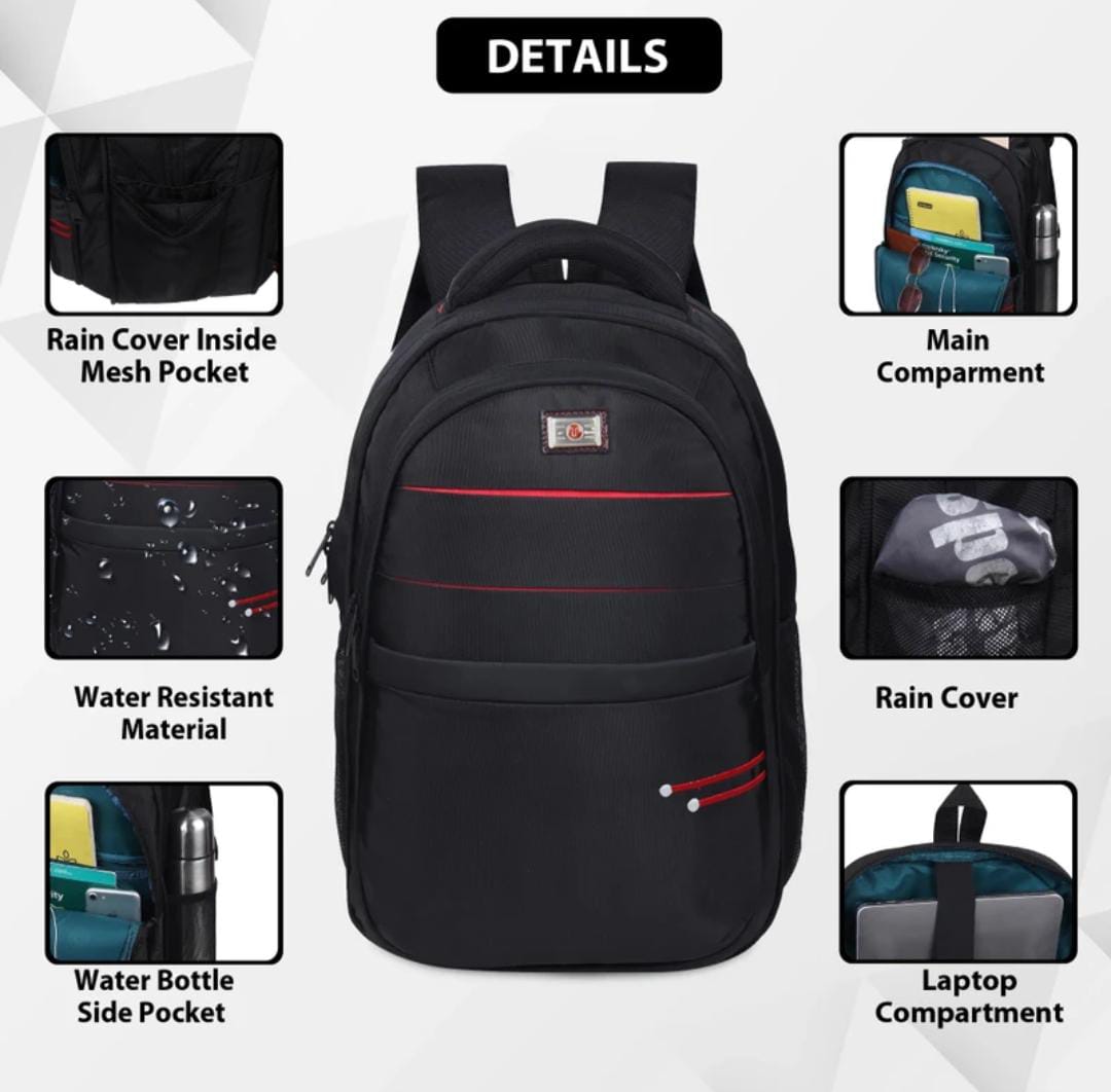 Stylish Black Laptop Backpack With Red Detaling-Multi Utility School College & Office Bag