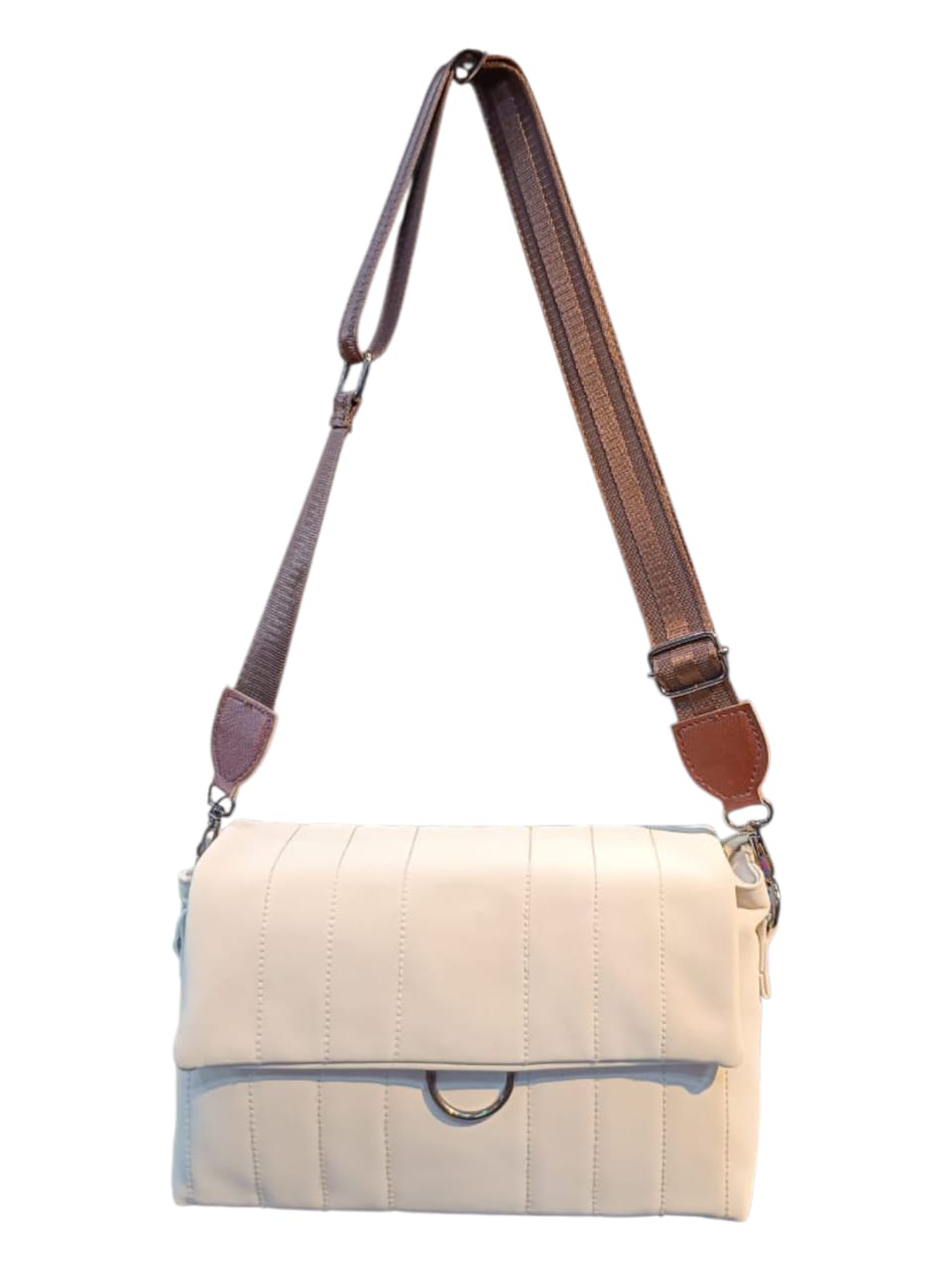 Stylish Cream Quilted Sling Bag With AdJUSTABLE Strap