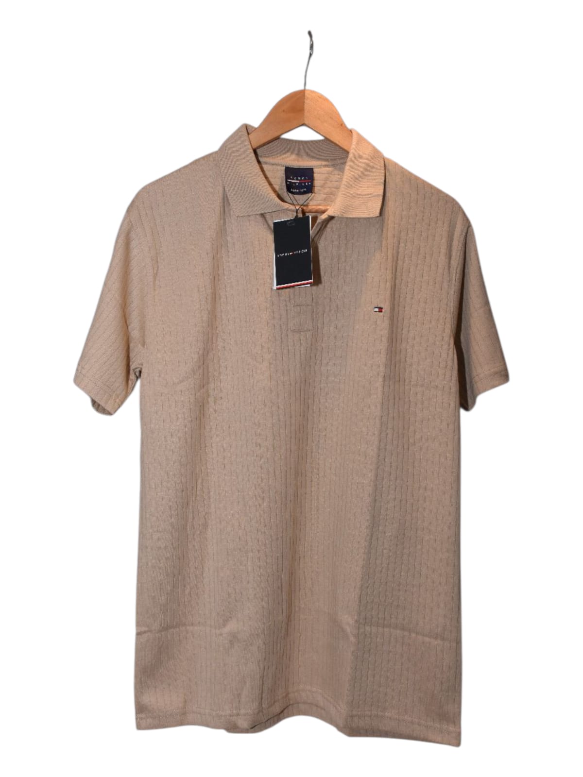 Tommy hilfiger Mens Beige Textured Cotton Polo shirt – Themahajangarments.in